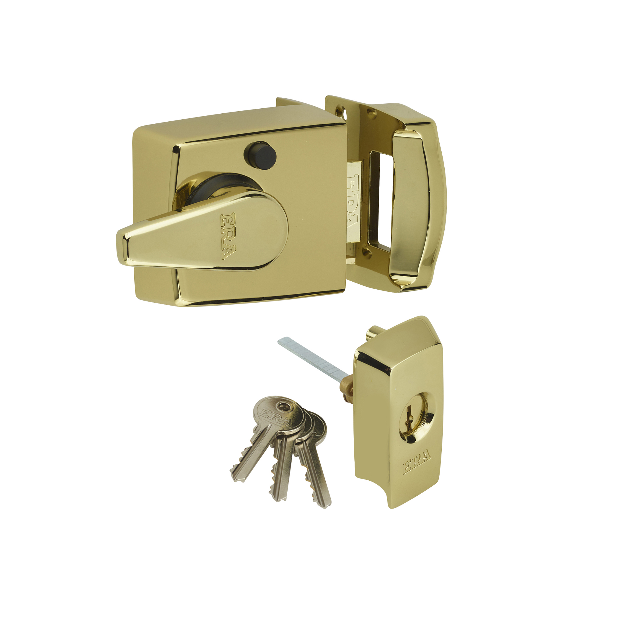 Suitable for inward opening interior and exterior timber doors only, the British Standard Nightlatch is available in brass effect, satin and a range of chrome effect finishes with matching brass effect and satin external cylinders. The external cylinder features a high security integral cylinder pull, which protects the cylinder from being drilled. The cylinder has over 30.000 cut key variations and is supplied with 3 cut keys. Can be keyed to pass or master keyed to allow multiple doors to be accessed with the same key. All finishes meet the requirements of BS EN 1670 Grade 3 (96 hours) for Corrosion Resistance to provide the most robust finish for your hardware.