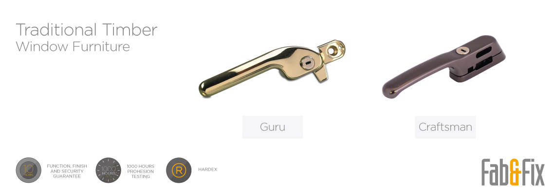 Alternatively, for a traditional style of window, why not choose a cockspur handle that is ideal for timber, aluminium or PVCu double glazed windows. Or the Fab&Fix Guru or Craftsman with matching stay are ideal for timber windows. We’re confident that whatever your need, our extensive range of window handles can meet it.