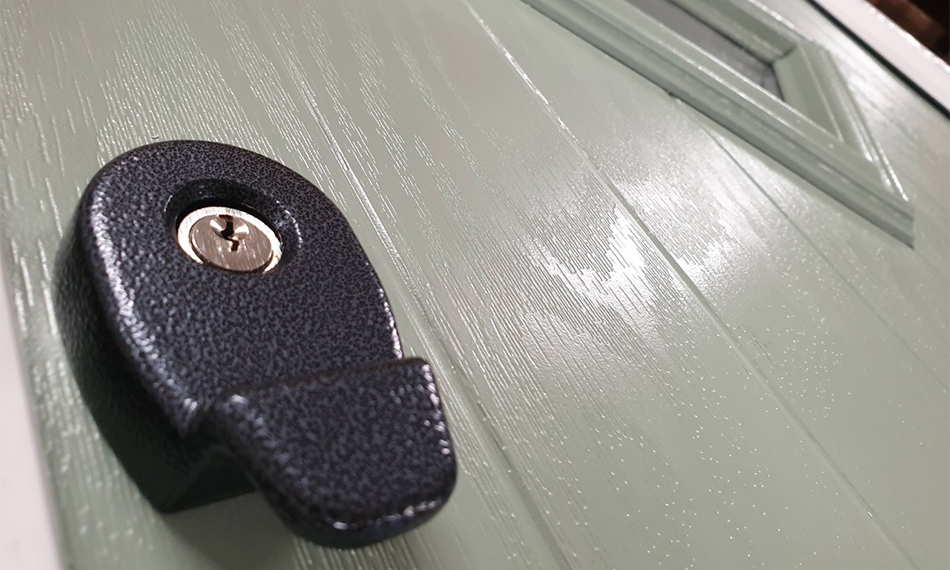 The 2 hook multi‐point lock on the doorset features twin high‐security hooks
