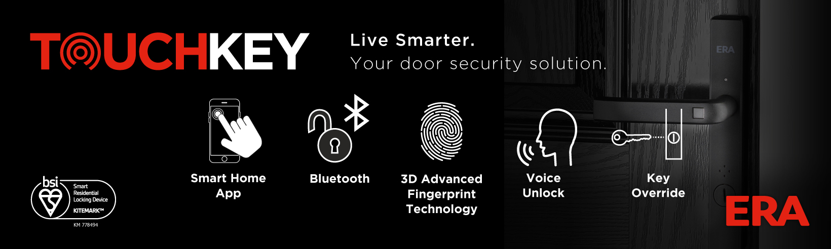 ERA, one of the UK’s leading home security and fenestration component providers, is launching its popular smart door security solution, TouchKey, in an all-new Architectural Black finish. Already available in stylish Chrome and Graphite, TouchKey combines a smarter security door handle, an auto-firing multi-point lock, and an anti-bump security cylinder for maximum customer convenience and peace of mind.